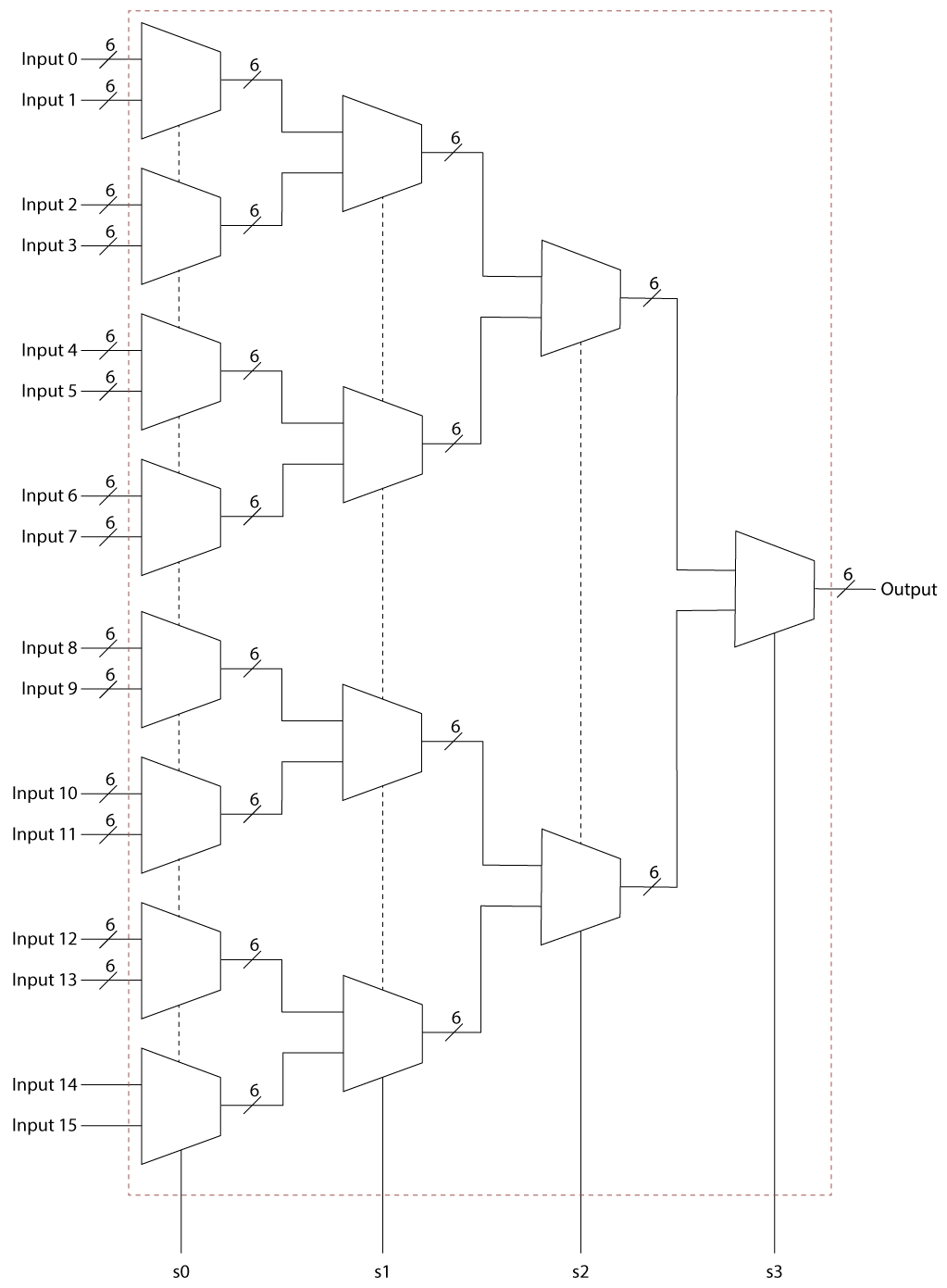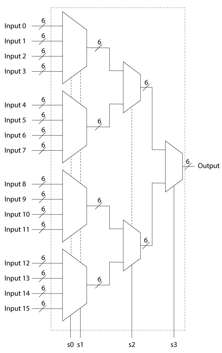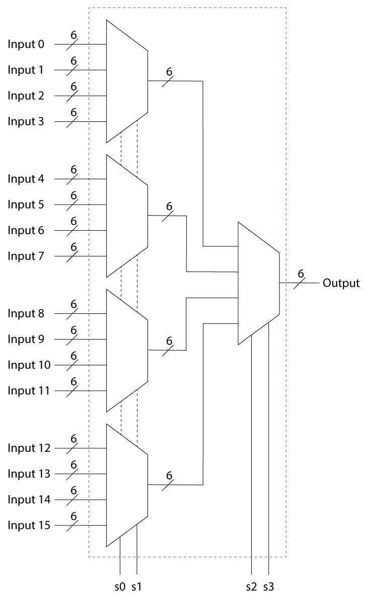 | Input-0 ... Input-15 | 0 | 1 | 1 | 0 | Input-6 → out-6 |